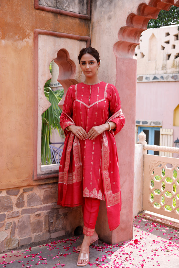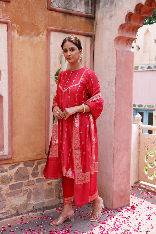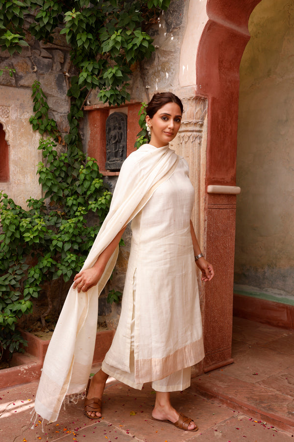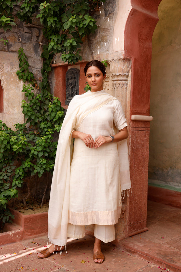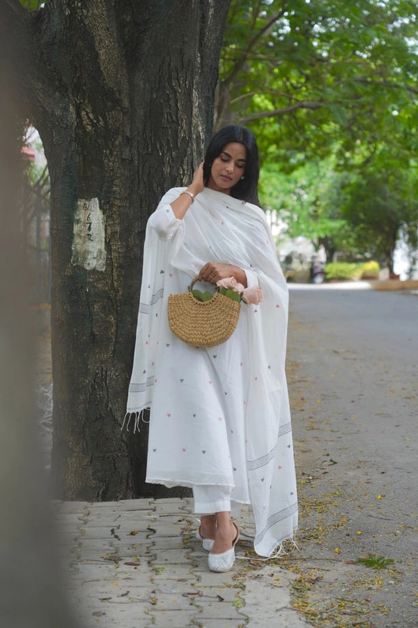 View Product - Handloom White Soft Cotton Jamdani Kurta Set With Dupatta