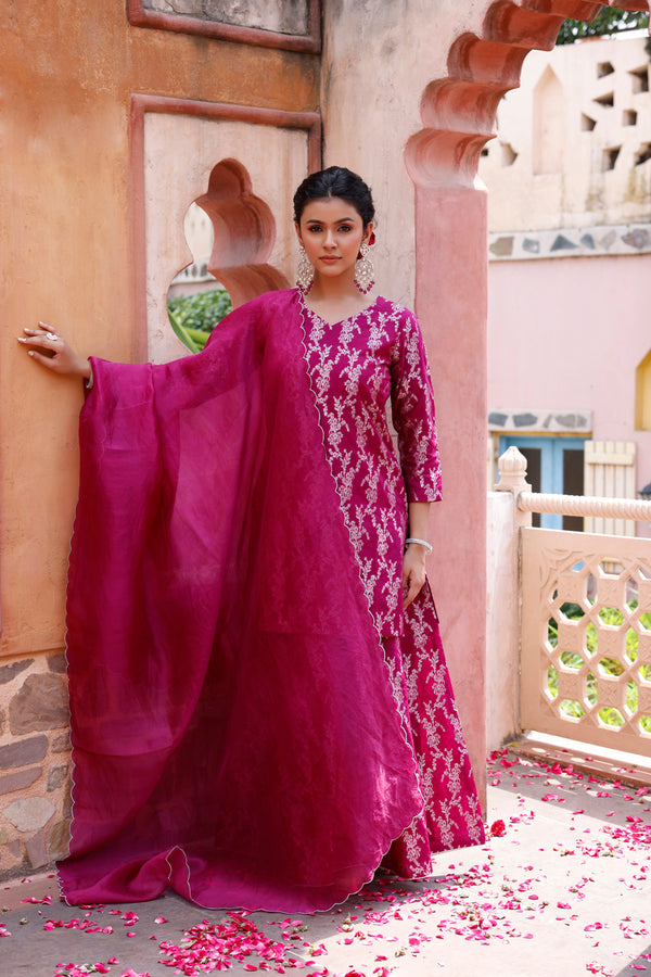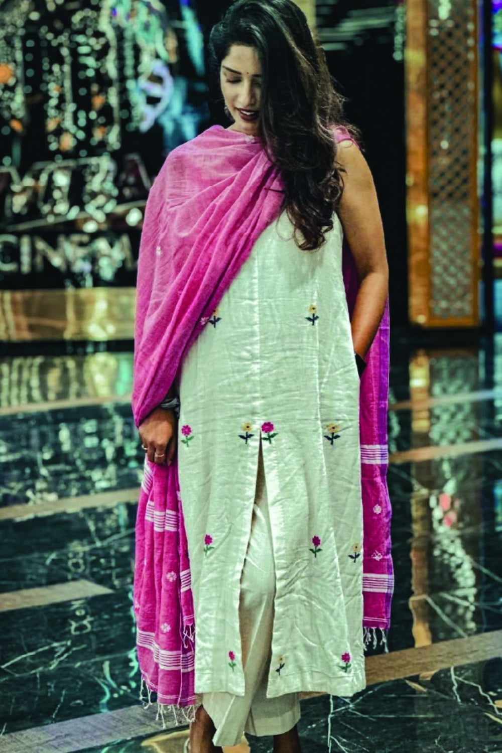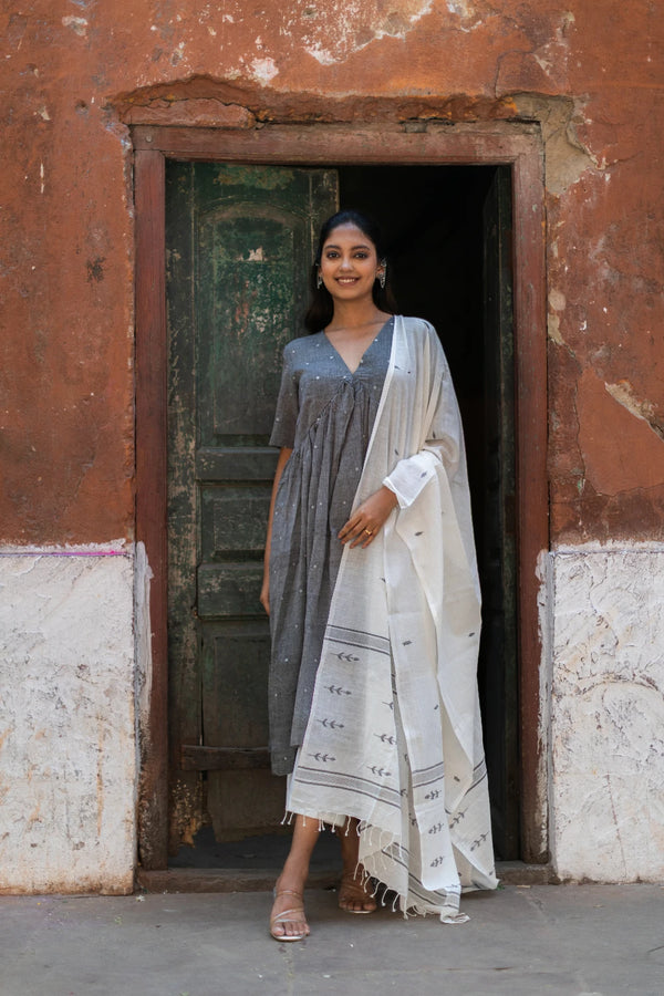 View Product - Handloom Off White Pure Cotton Jamdani Flower Kurta Set With Dupatta