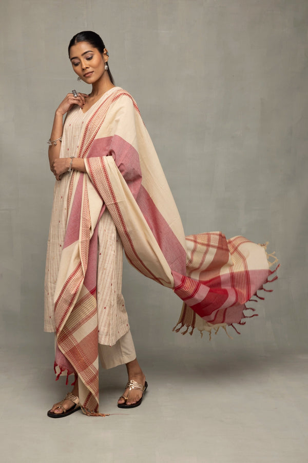 Handwoven pieces are not just fabrics, but living stories—crafted slowly, with patience and love. In their texture lies heritage, in their imperfections, the beauty of human hands.