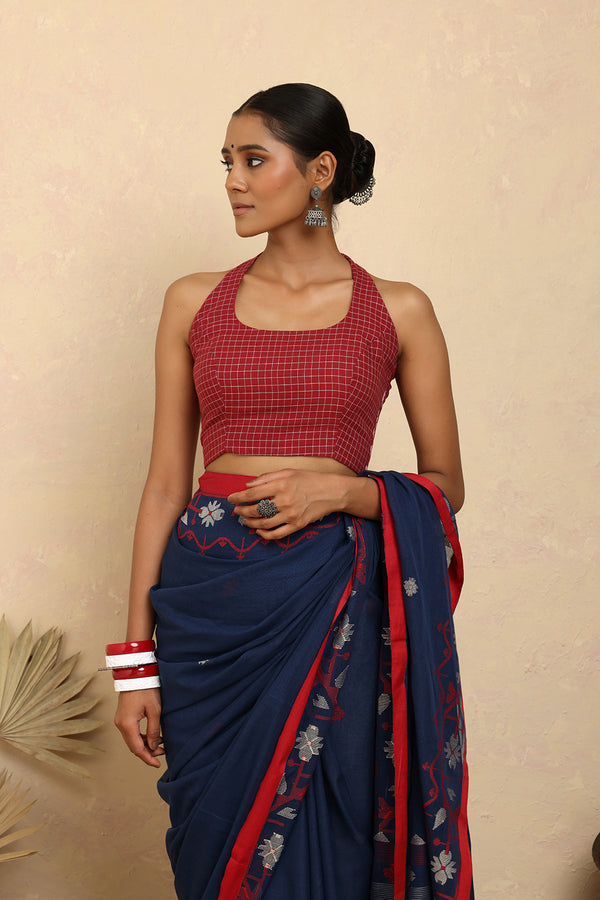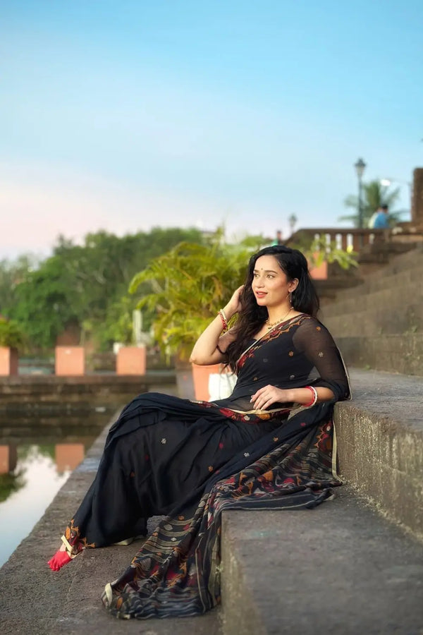 View Product - Handloom Black Pure Cotton Jamdani Saree With Multi Colour Border