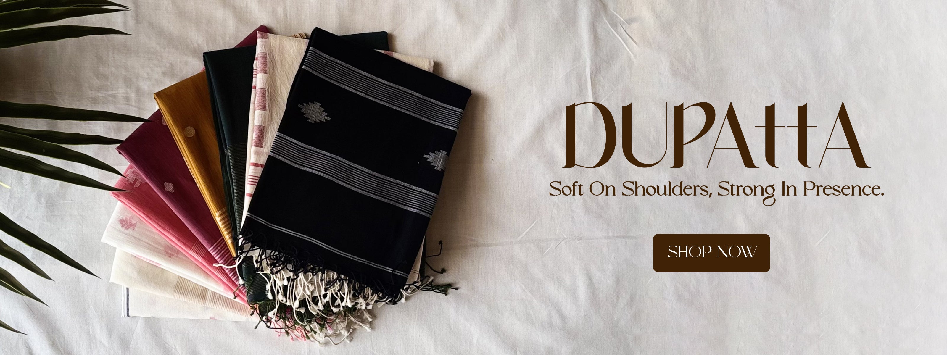 Each handwoven piece carries generations of craftsmanship, celebrating heritage, supporting livelihoods, and keeping Indian handlooms alive through thoughtful design.