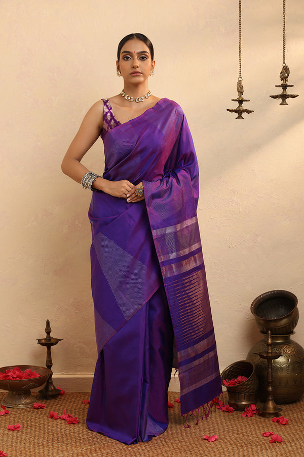 Handloom Purple Zari Stripes Pure Silk Kanchi Contemporary Saree