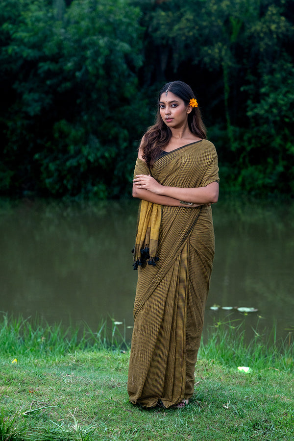 Handloom Tea Green Mulmul Cotton Jamdani Saree