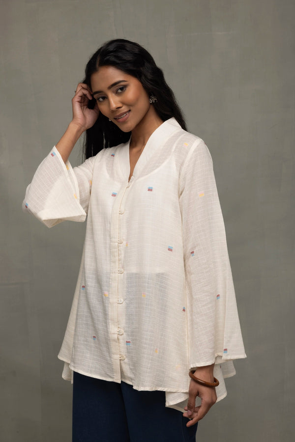 Ivory Pleated Jamdani Puff Sleeve Shirt Top