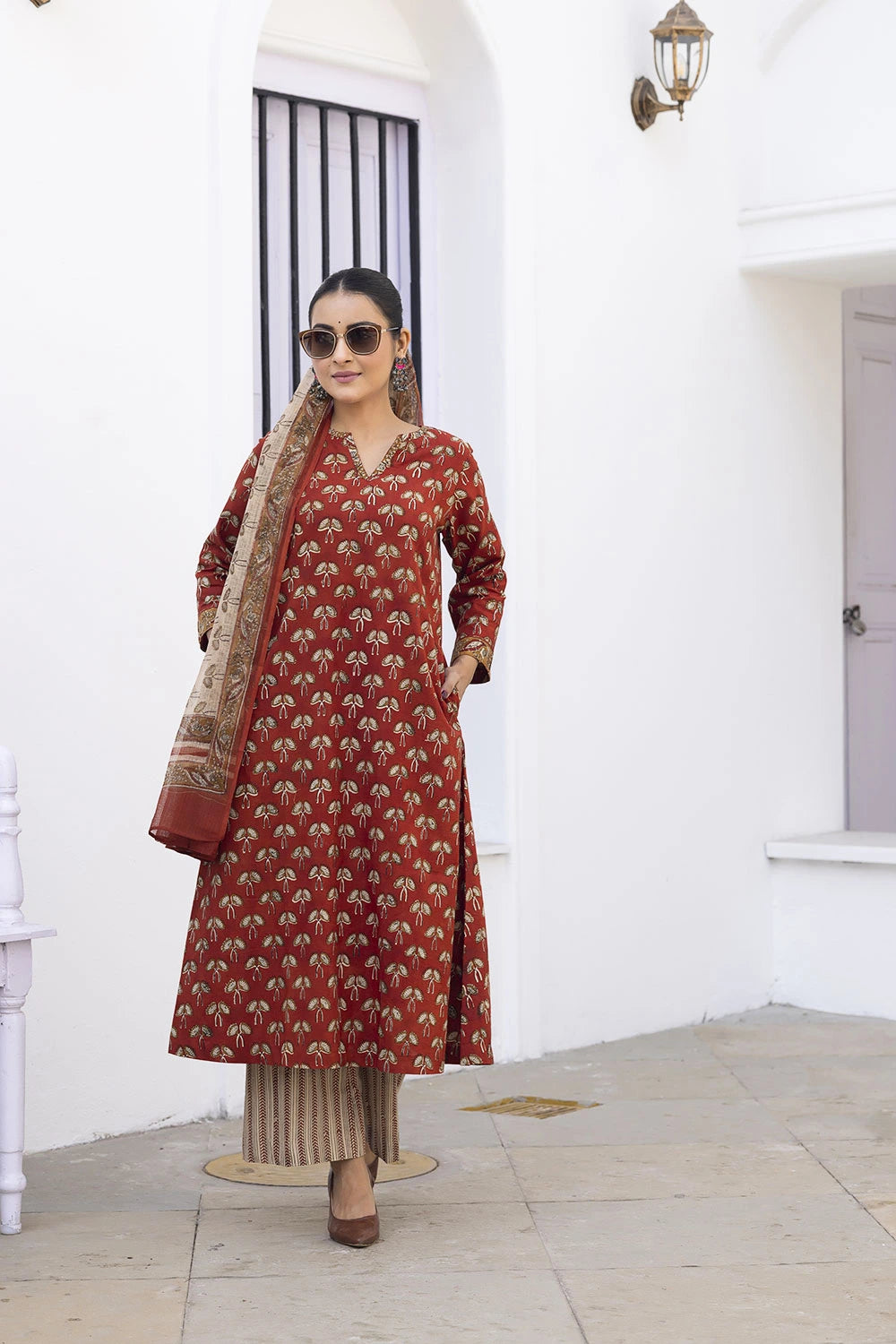 Elevate your ethnic wardrobe with this maroon hand block print kurta set with dupatta. Crafted from breathable fabric, it features intricate artisanal prints, a flattering silhouette, and all-day comfort. Perfect for festive wear, office styling, or casual outings, this elegant kurta set blends tradition with modern charm for a timeless, graceful look.